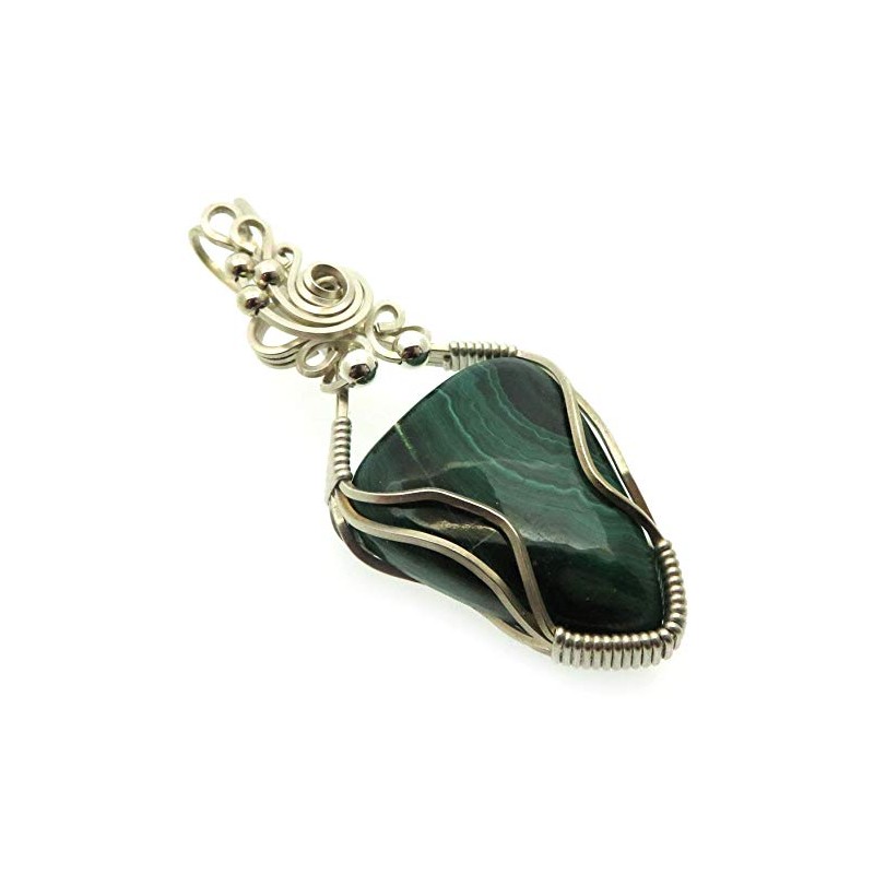 Malachite Gemstone Sterling Silver Wire Wrapped Pendant 04