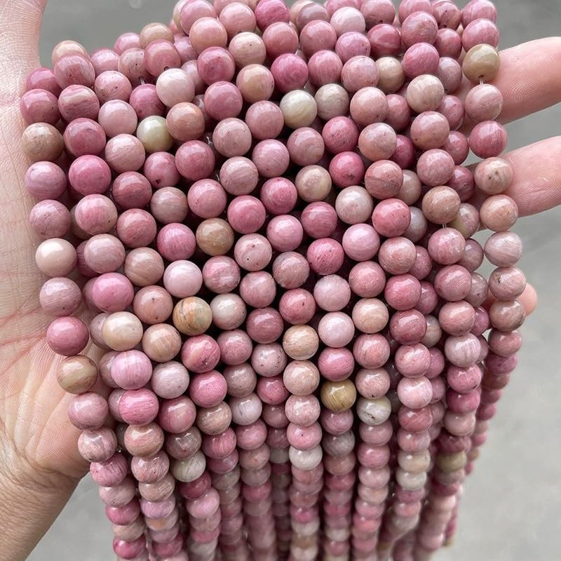 Malahill Natural Stone Beads for Jewelry Making Loose Beads with Stretch Cord for Jewelry Making Bracelets Necklaces 4mm=180pcs Rhodonite 4mm