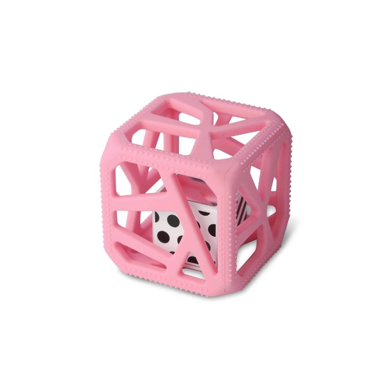 The Malarkey Kids Chew Cube is the mom-created modern rattle and teether. It provides four-way sensory stimulation, including soft, textured teething edges for tender gums; large flexible holes to help baby with gripping skills plus a black and white patterned rattle with mirrors to provide stimulation for baby's ears and eyes.