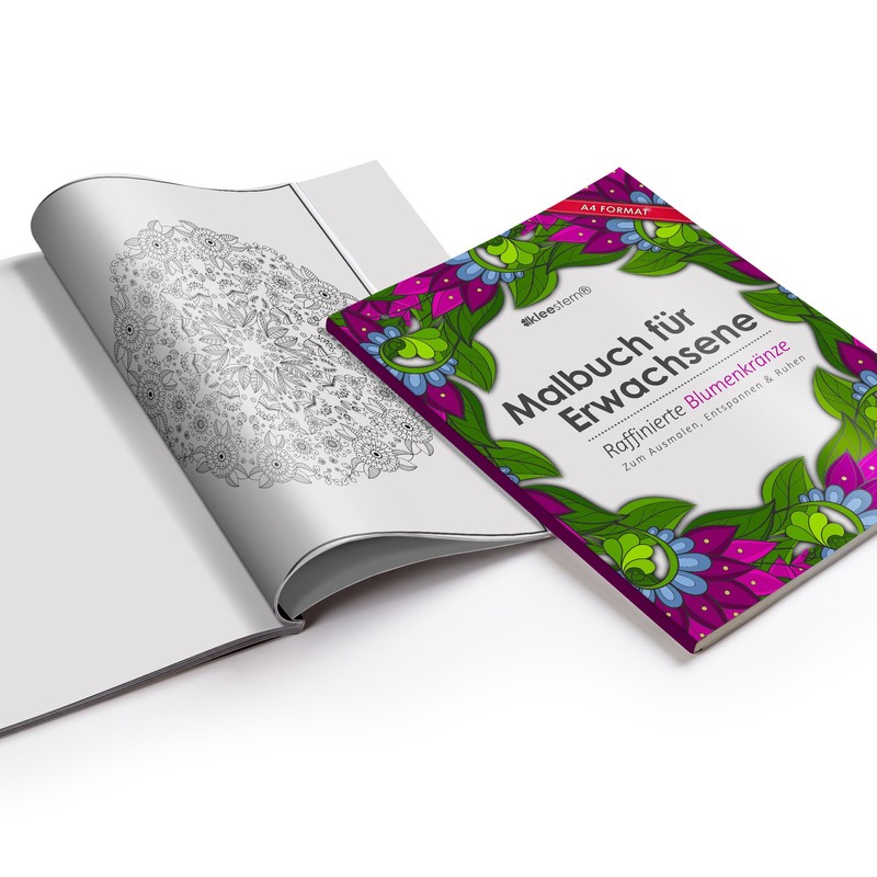 Malbuch für Erwachsene: Raffinierte Blumenkränze zum Ausmalen, Entspannen & Ruhen (Kleestern®, A4 Format, 40+ Motive)