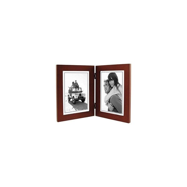 - ALLURING LOOK: This decorative double opening hinged frame holds two 4x6 inch photos in 3.5x5.5 inch vertical display opening; beautiful walnut finish with woodgrain texture. Overall dimensions: 12.75” (W) x 8.25” (H) x 0.625” (D)