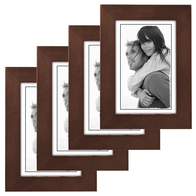 Malden International Designs Linear Classic Wood Picture Frame, 4-Inch by 6-Inch, Walnut 4-Pack