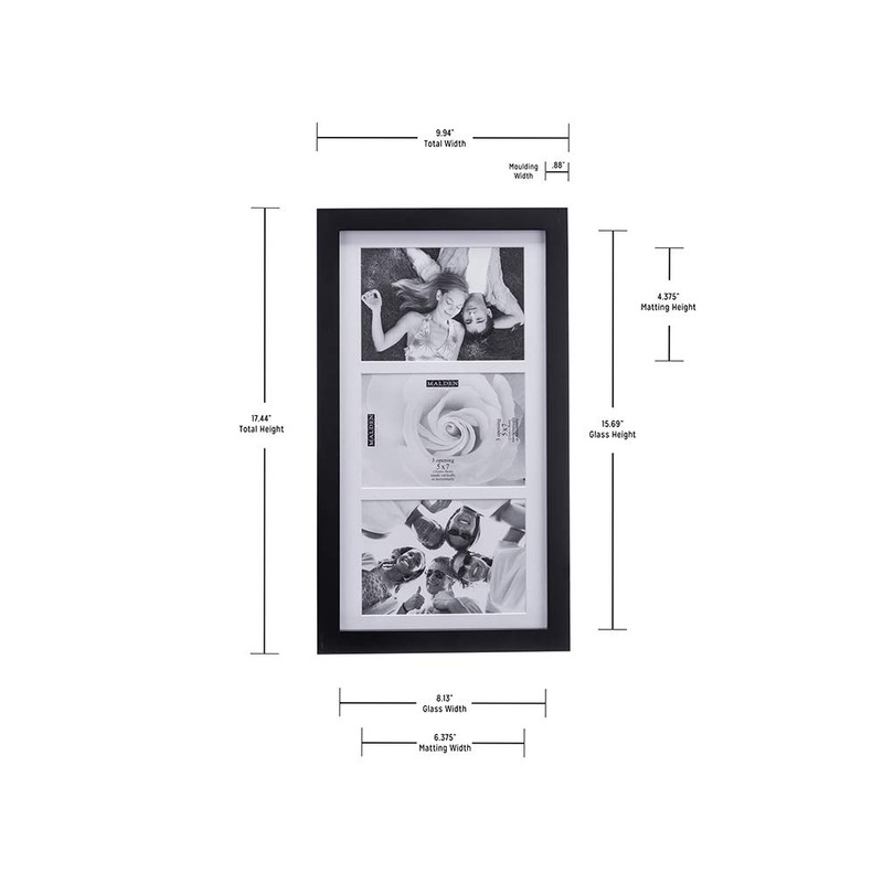 - SLEEK MODERN DESIGN: Three opening 5x7 inch collage picture frame with sleek and modern matting, extra wide real wood molding, full glass panel, and vertical/horizontal wall hanging capabilities!