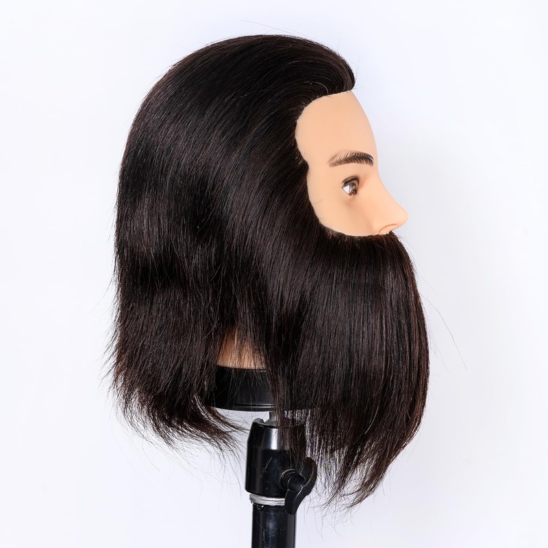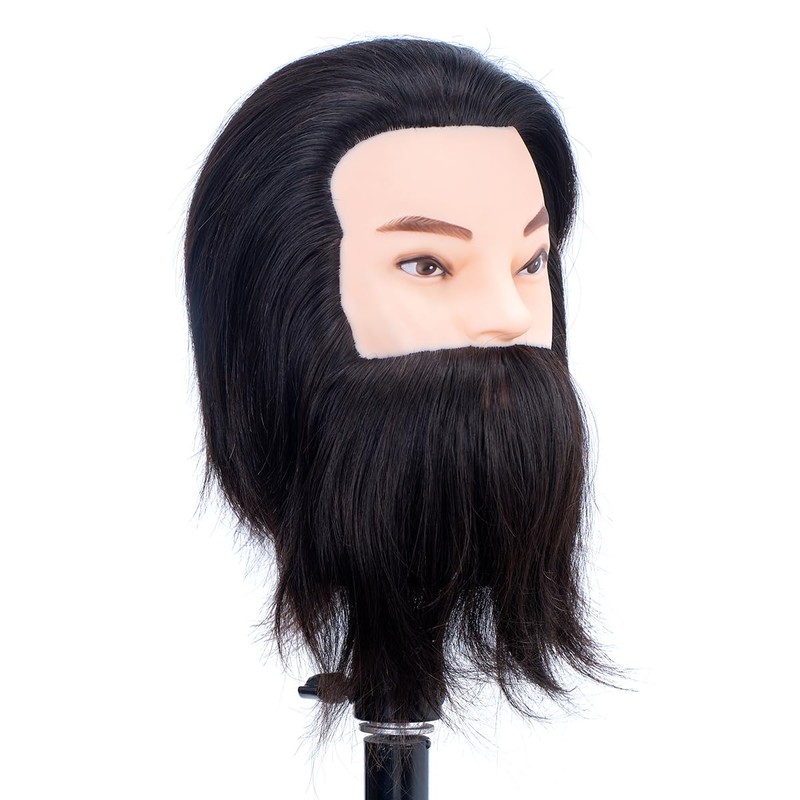 Male Mannequin Head 100% Human Hair Mannequin Head Cosmetology Mannequin Head with Stand Mannequin Head Human Hair Doll Head (Bearded Black)