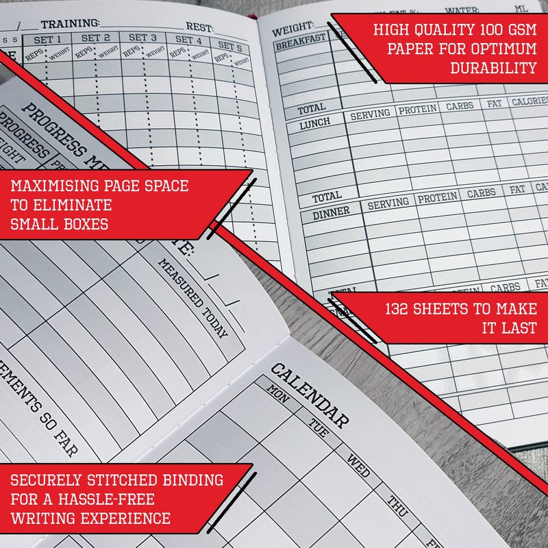- ✍ SET GOALS – 13 fitness and nutrition goals which you can continue to track every month, hence perfect for measuring your progress. Use the calendar to plan your training sessions ahead of time.