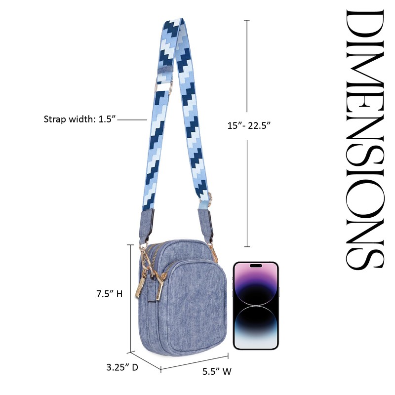 Mali+Lili, Josie Triple Compartments Crossbody Bag for Women with Webbing Strap(Denim Blue)