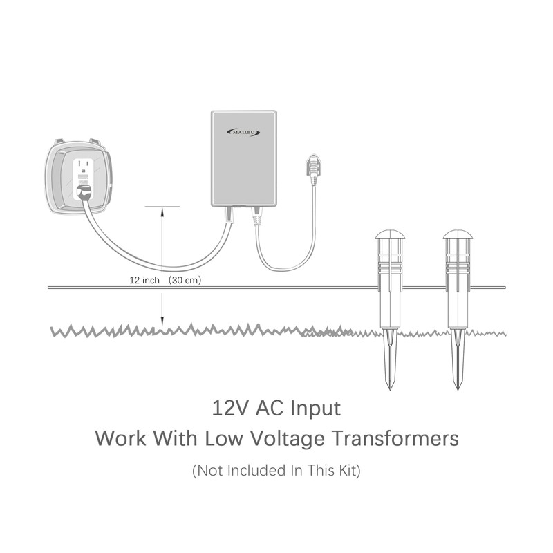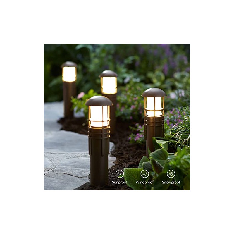 Malibu LED Landscape Lighting 8400-4320-01 low voltage aged iron metal finish bollard light includes clear glass lens, plastic stake, fast lock connector and one 1.1watt warm white Nichia SMT LED.