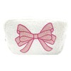 Malibu Sugar Cute Makeup Bag White Sherpa with Pink Bow Adorable Bow Makeup Bag for Tweens Teens and Women Perfect Cosmetic Bag or Travel Organizer