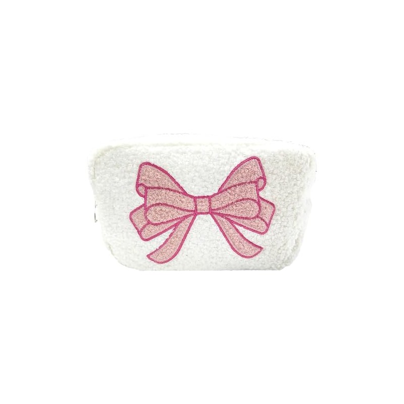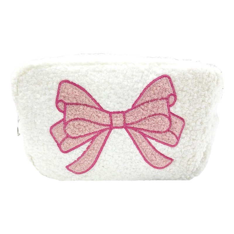 - (Super soft stylish makeup bag) Made from ultra soft white sherpa fabric with a cute pink bow this adorable bow makeup bag is perfect for tweens teens and women who love trendy and functional accessories