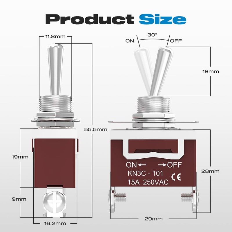 - Easy Installation: This toggle switch 120v has a 0.46" (11.7mm) mounting hole with screw terminals for quick connection and easy installation.