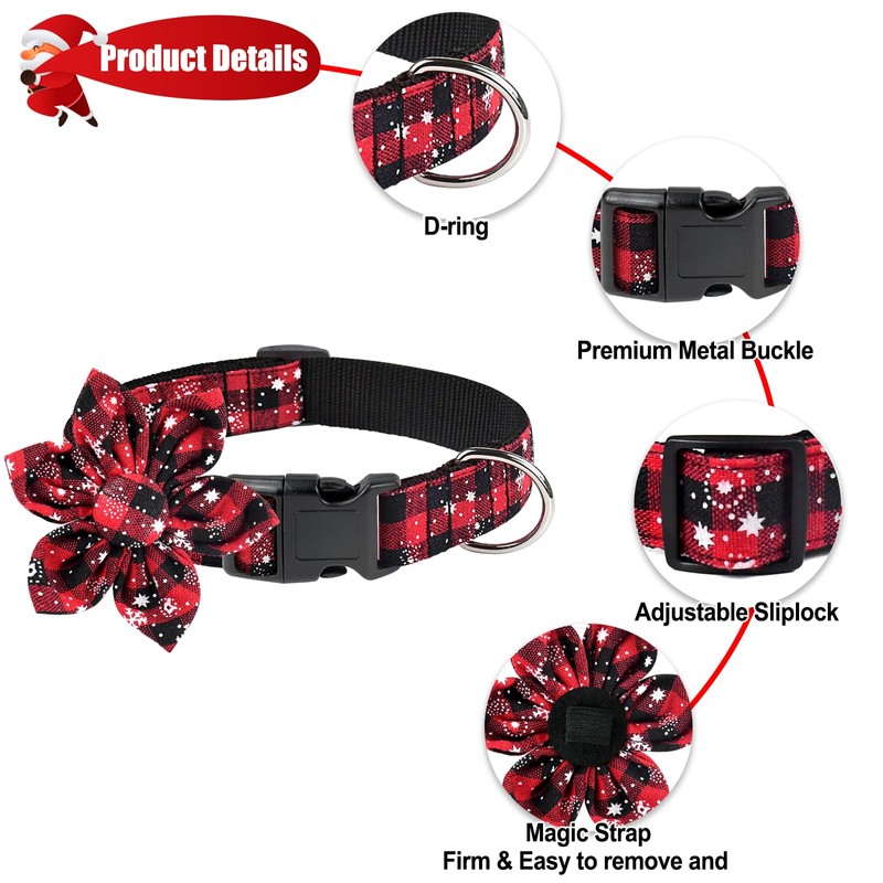 • 【Classic Plaid Dog Christmas Collar】Unique classic buffalo red plaid dog collar with flower, fashion and novelty. The flower has strap, which can be easily removed from the collar, and can be attached to other collar. Cute dog collar give you and your pets new experience of walk the dog, it is the best gift for your pets