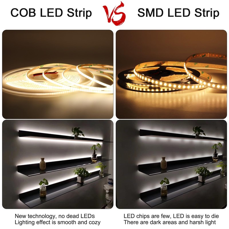 - 【Safe Use & Easy Installation】MALIIGAZA COB LED strip works at DC 12V or 24V low voltage, without any hazard during using. With strong adhesive tape on the back of the LED strip, can easily paste it on smooth & clean surface.