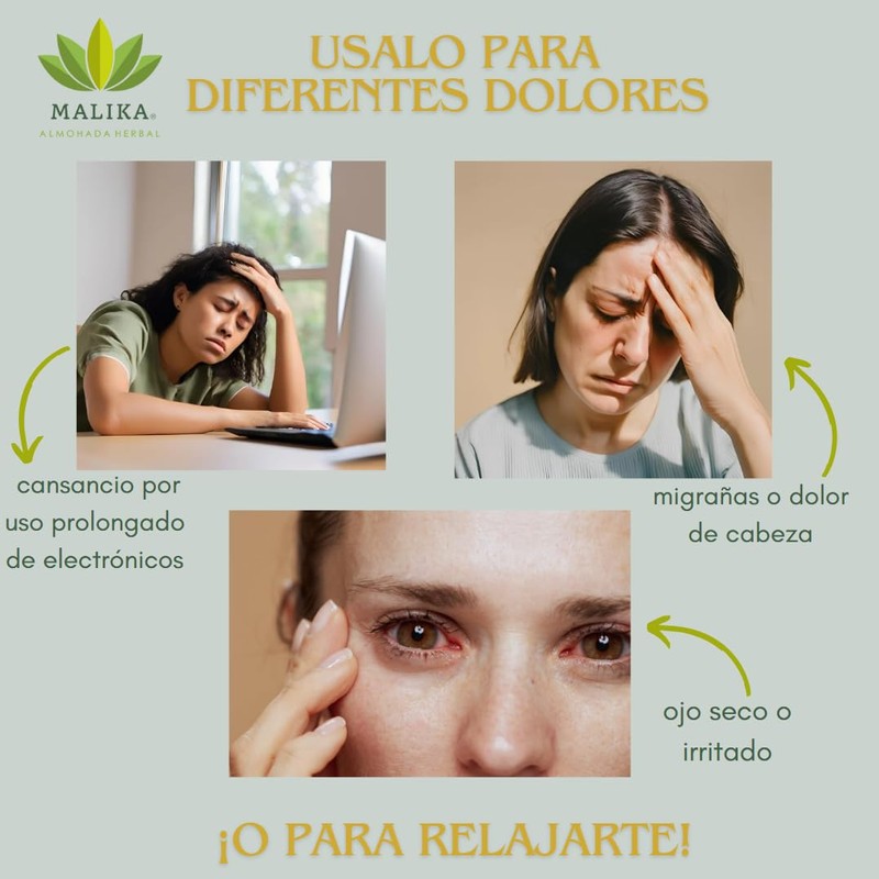 MALIKA - Antifaz herbal- Elaborada con Semillas y Hierbas Aromáticas - Ideal para el Alivio de Ojos Hinchados, Dolor de Cabeza y Migrañas - Uso en Terapia de Frío/Calor (cuadros)