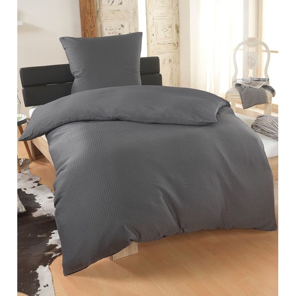 Malika® Seersucker bed linen 135 x 200 cm with 80 x 80 cm pillowcase, ÖkoTex Standard 100, fine seersucker bed linen made of microfibre, summer bed linen, non-iron and easy-care (anthracite, 135 x 200 + 80 x 80 cm)