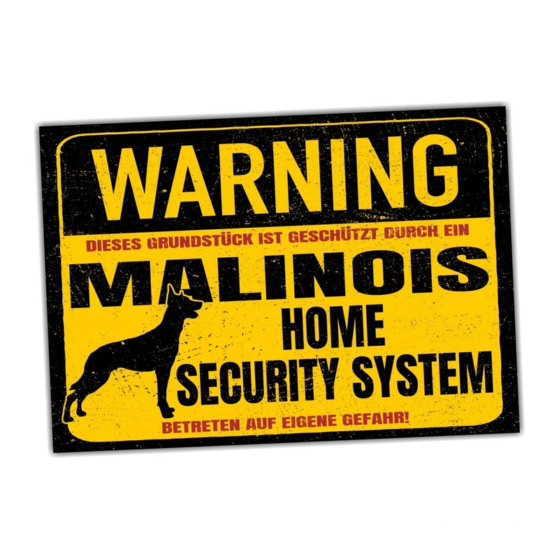 - Great attention door sign dog motif: this property is protected by a Malinois Home Security System! The dog sign warning of the dog for your door or garden fence. Weatherproof and UV-resistant printed with great dog motif in the latest UV printing process. Siviwonder