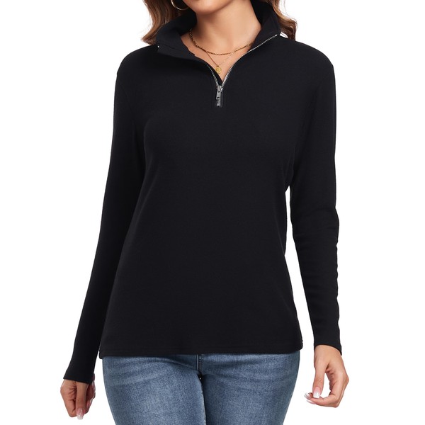 Malist Women’s Long Sleeve Ribbed Zipper Turtleneck Top Black Medium