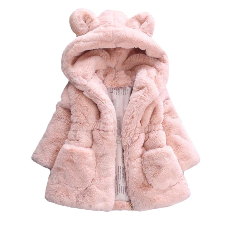 • ★ Winter Warm fleece coats for toddler girls thick faux fur hooded jacket coat infant baby girls long sleeve windproof snowsuit with cute cartoon ears