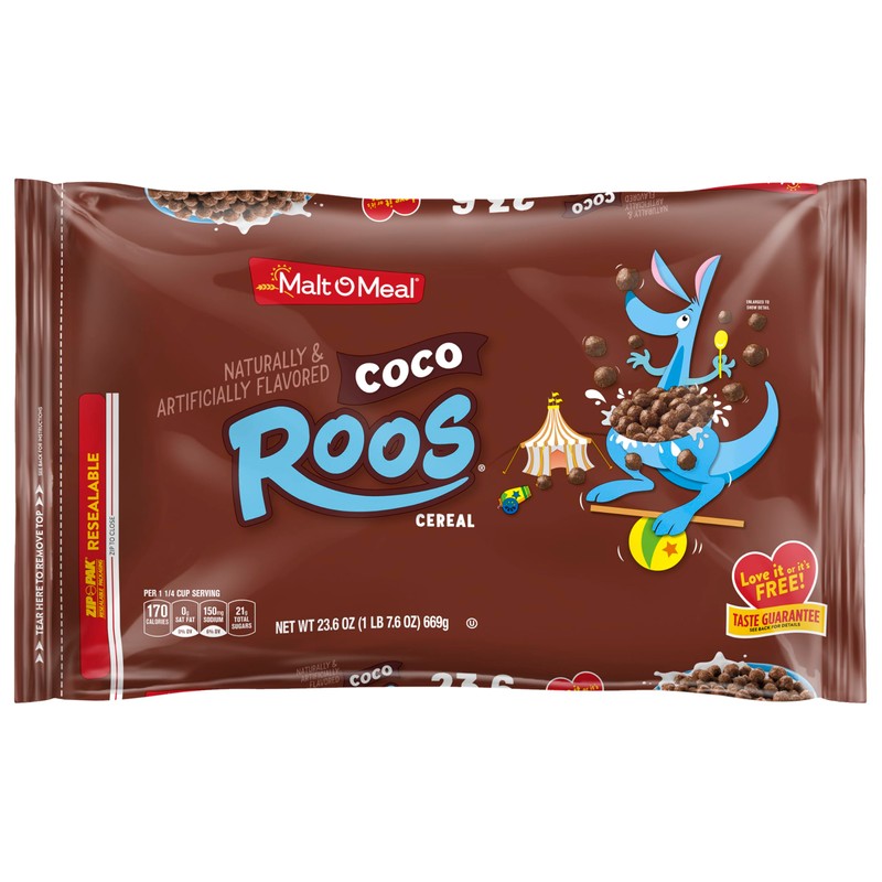 - One 23.6 oz resealable cereal bag of Malt-O-Meal Coco Roos Breakfast Cereal