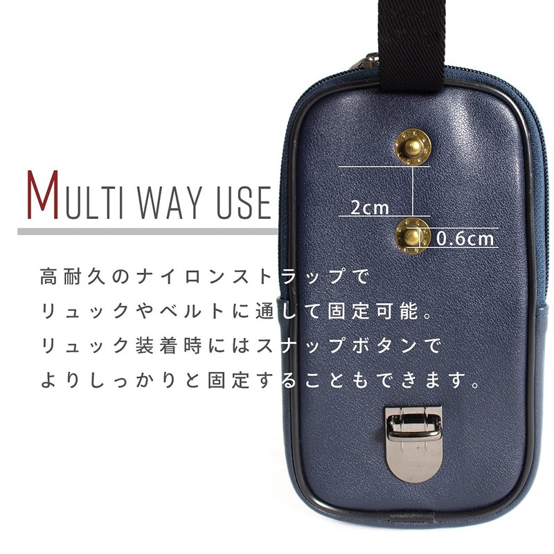 This pouch does not require any extra procedures, so you can check it on the spot and operate the screen right from the top of the case. When storing your smartphone, the main unit can be secured with an elastic band. Easy touch operation with no gaps. It also has a handy mesh pocket for storing small items. The elastic mesh holds the contents in place, so it is recommended for storing earphones and charging cables. (Backpack Attachment) Heavy duty nylon straps that can be secured through a backpack or belt. Snap button for more secure fit. Use it as an additional pocket for a backpack, or slip it through a belt to turn it into a waist pouch, this is a beni gadget that can be reached in itchy areas. In addition, when attaching to the compatible product, you can use the strap and secure it with the nap button. For other bags, it is easy to put through the strap. Exquisitely calculated loops and buttons secure additional gadgets It is designed to fit perfectly on the target product, but it can also be used with other bags if the strap can be passed. This item has been made with the attention that is unique to popular brands. Available in 2 popular colors for both men and women. You can choose from a cute, stylish, cool, casual, business, or formal style. Recommended as a gift for anniversaries, Mother's Day, Father's Day, Valentine's Day, White Day, birthdays, Christmas, etc. black / navy navy