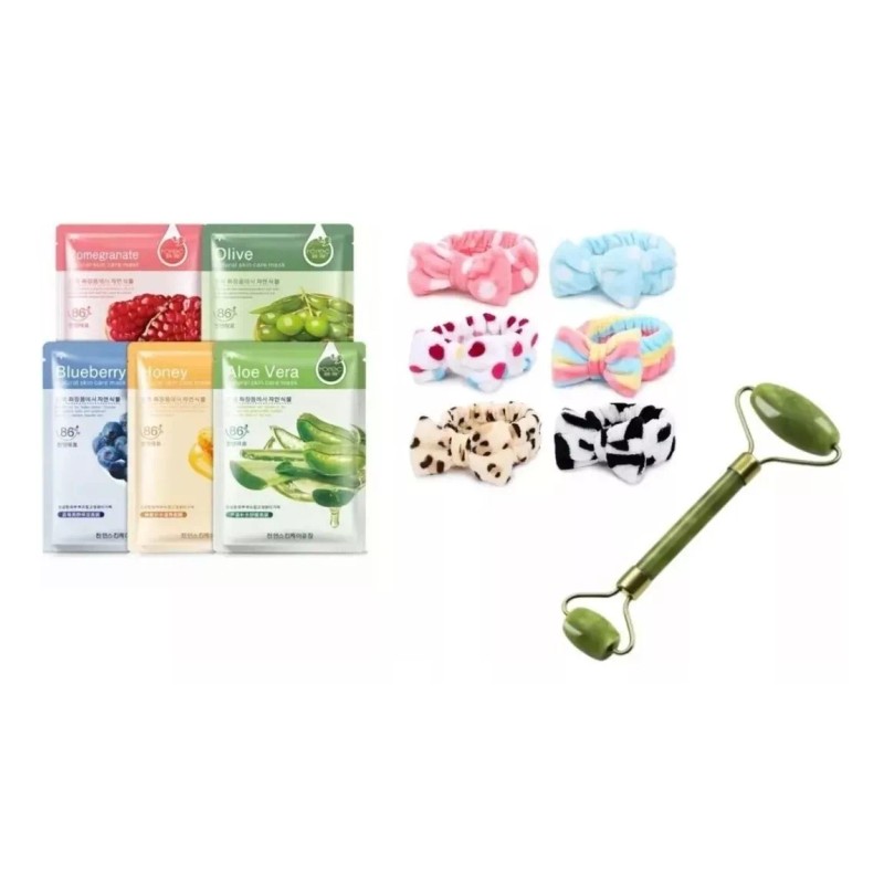Maluk Store 5 Mascarillas Faciales + Rodillo De Jade + Diadema Cabello
