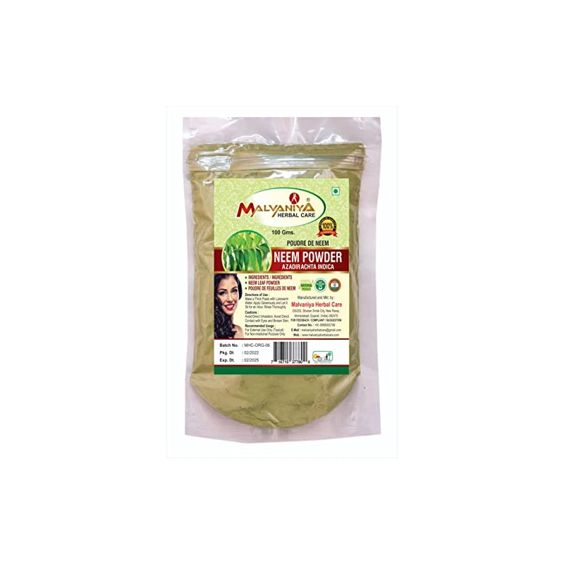 MALVANIYA HERBAL CARE Neem powder | Azadirachta Indica (300 Grams/10.6 Ounce Bag) 0.66 Lb From Pure Indian Neem Leaf - Non-GMO, Raw Pack of 3 (Each Product 100Grams(0.22 Lb/3.5 Ounce) (External USe)