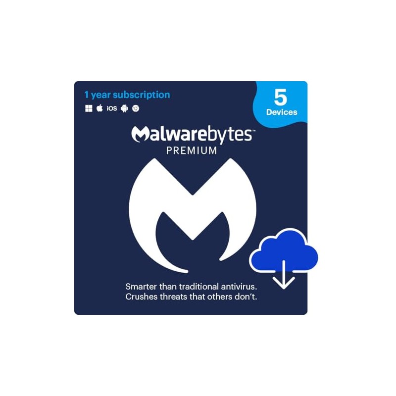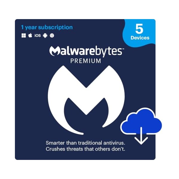Malwarebytes Malwarebytes Premium | 1 Year, 5 Device | Windows, Mac OS, Android, Apple iOS, Chrome [Online Code]