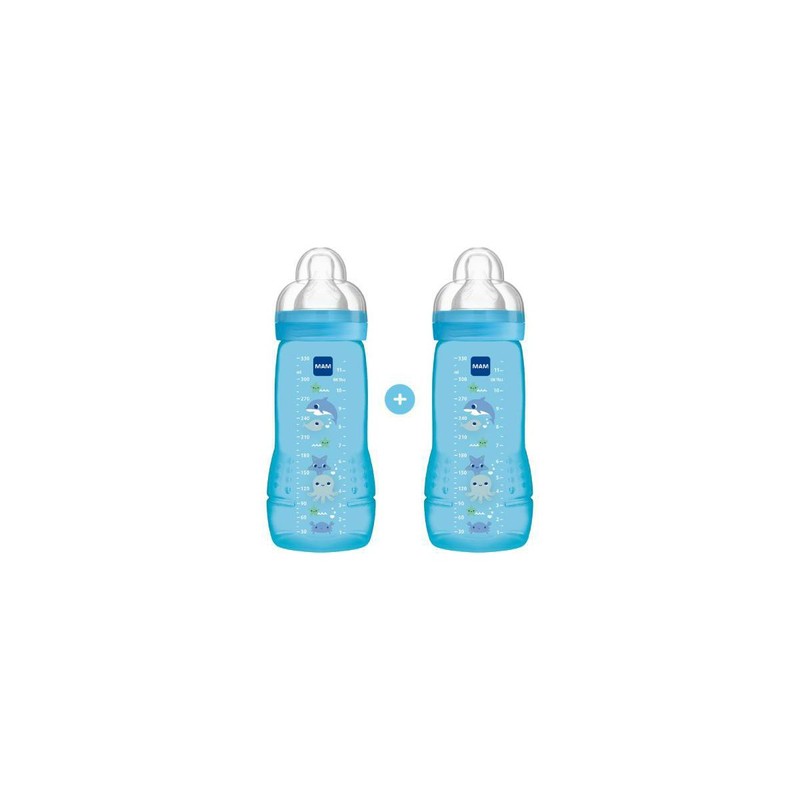 MAM 1+ 1 MAM Easy Active Baby Bottle for 4 Months+ for Boys, 2x330ml (CODE 365SB)