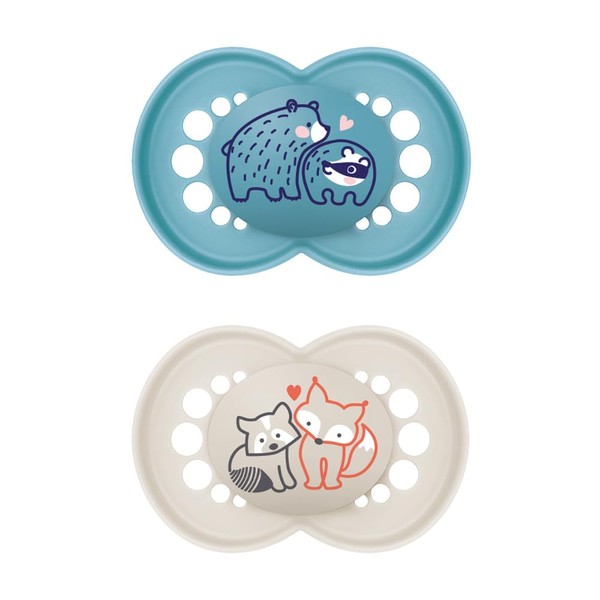 - Fits in the baby's mouth – the MAM dummy set includes two dummies with symmetrical teat and the baby's mouth shape