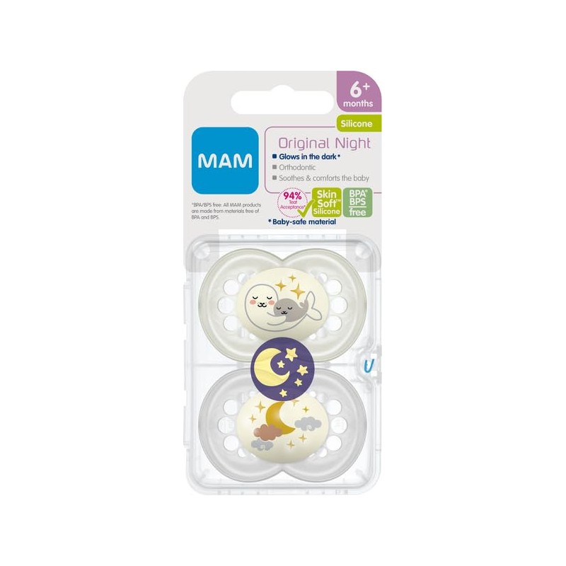 MAM Original Night Dummy Set of 2, Rubber with Dummy Box, 6+ Months, Neutral