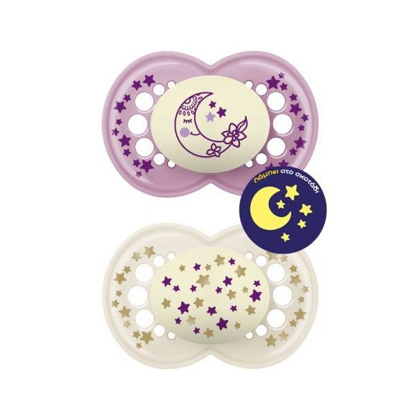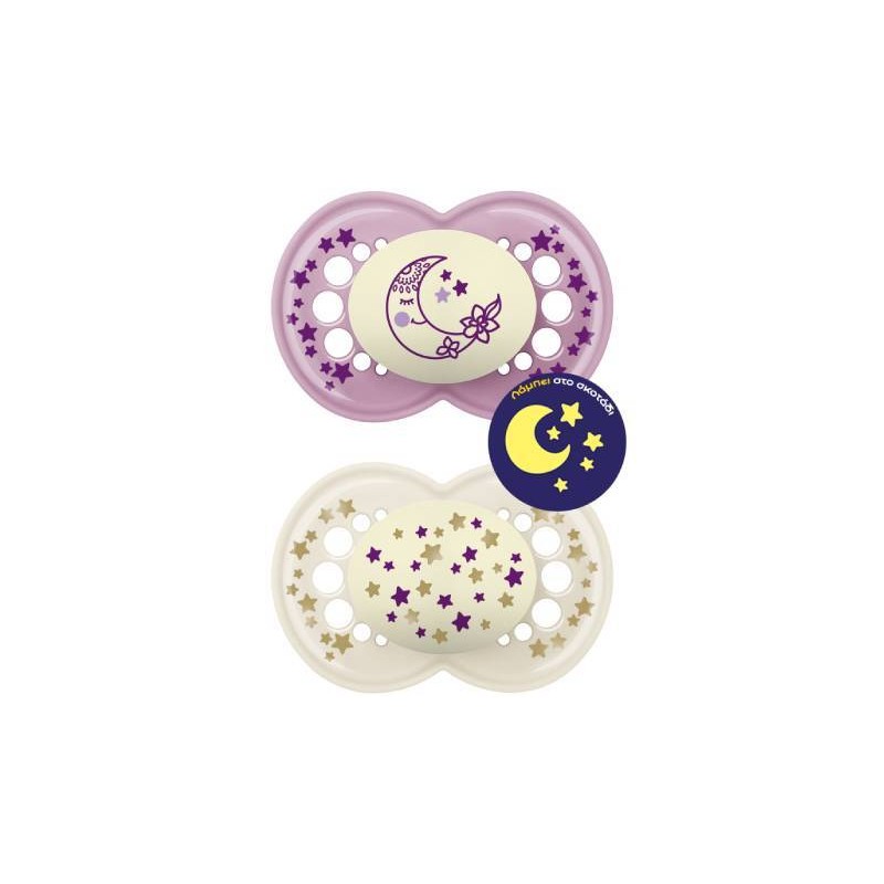 MAM Original Night Siicone Soother for Girls 16+ Months, 2pcs (Code 260SG)