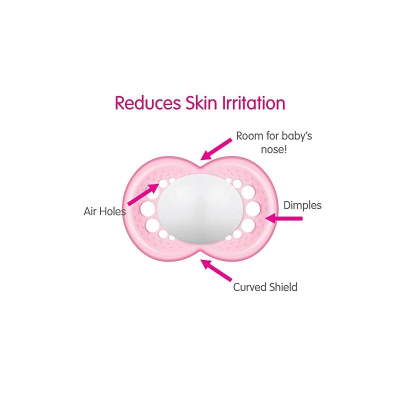 - SILICONE NIPPLE: The BPA-free silicone boy and girl pacifier 6+ months has the signature MAM design, with silky SkinSoft material and a symmetrical shape that's ideal for jaw and teeth development.