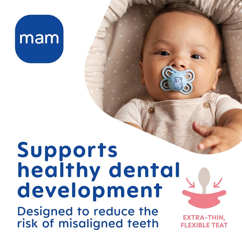 - Healthy development: MAM orthodontic soother has been developed with dentists for healthy development, helping reduce the risk of misaligned teeth for your newborn baby