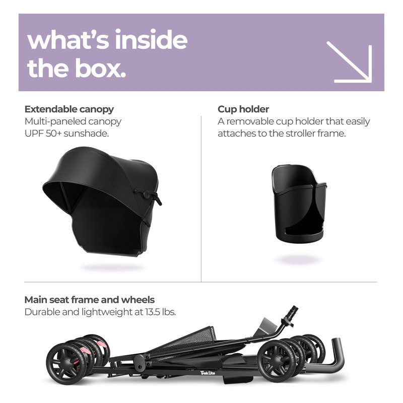 - Every Day, Every Way: Designed for convenience and quick, grab-and-go trips, the Trek Lite toddler stroller combines practicality with luxury. It pairs a durable, lightweight 13.5 lbs steel frame with premium fabrics and stitching for everyday use