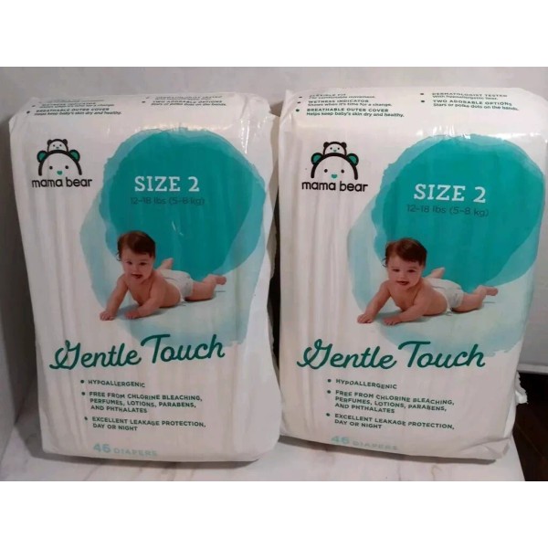 Mama Bear Gentle Touch Diapers Size 2 Hypoallergenic 46 Count New Unopened Lot Of 2 (92 total Diapers) Outer Packaging May Be Slightly Blemished