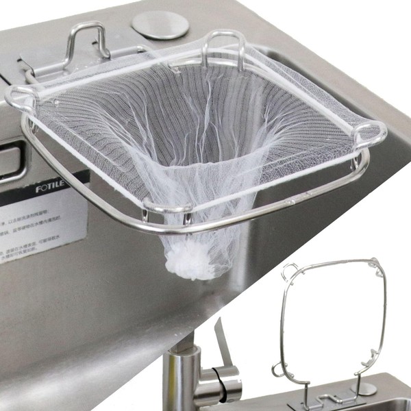 Mama Kura, Triangular Corner, Stainless Steel, Equipped with Stainless Steel Hooks, Folding, No Space, Drainage Net Holder, Disposable Dish Drainer Bag Holder, Kitchen, Sink, Dish Drainer, Food