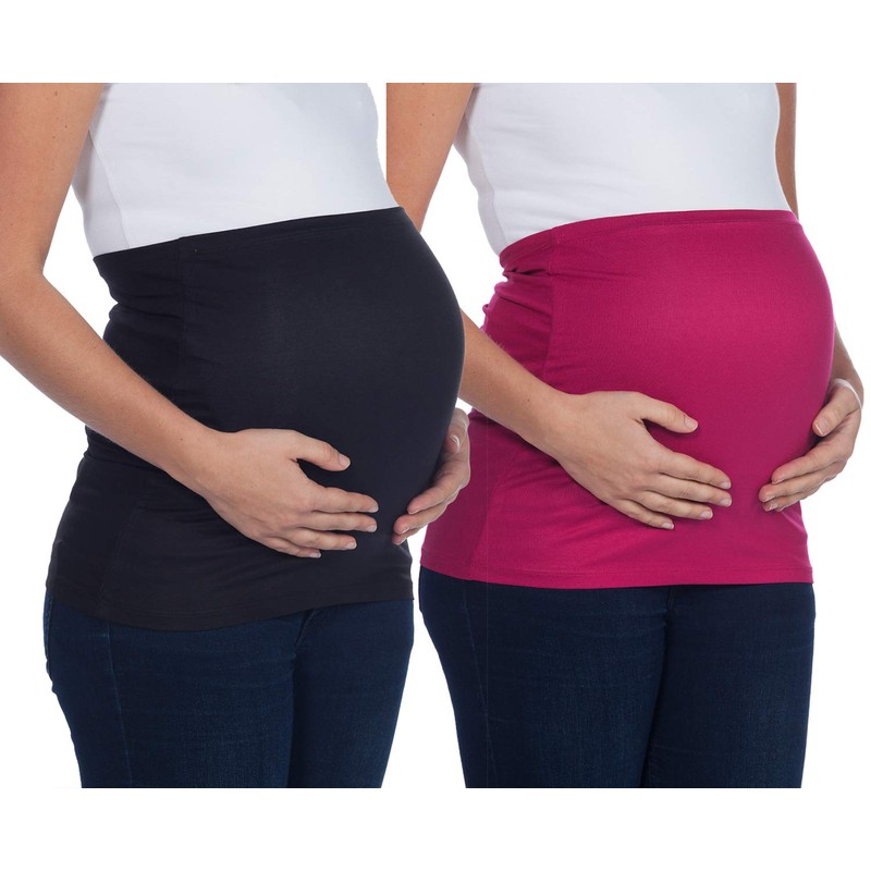 Mamaband Maternity Bump Band in Twin Pack + Pack of 3 Jeans Extenders, Back Warmer and Top Extender for Pregnant Women, Stretch Fabric Maternity Wear - Magenta/Black, size: 38-42