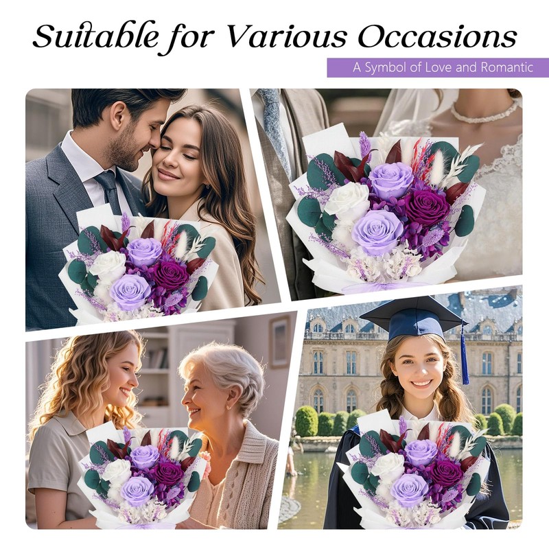 • Effortless Maintenance: No watering, no sunlight, no upkeepjust enduring elegance that lasts for 3 years. Our preserved purple roses bouquet are a low-maintenance way to enhance any room with natural beauty, creating a graceful atmosphere in your home or office for long-term enjoyment.