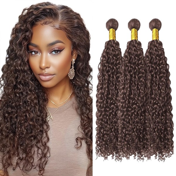 MAMART 28 30 32 Inch Dark Brown Kinky Curly Bundles Human Hair Brown Bundles Color 4 Human Hair Double Weft Remy Hair Extensions Wet and Wavy Hair Silky Soft