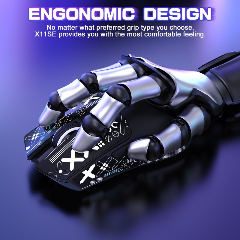 - 【PAW3311 Sensor & BK52820 Chip】X11SE equipped with the PixArt PAW3311 sensor and upgraded BK52820 main chip. This mouse offers up to 22,000 DPI with 50-DPI fine-tuning via driver. Enjoy ultra-fast 40G acceleration, 1000Hz polling rate, and 400 IPS tracking speed—ideal for gamers who demand precision and speed.
