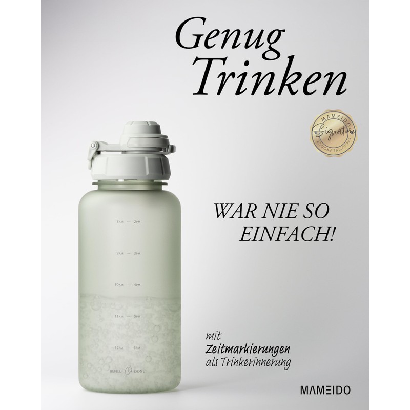 - Sufficient drinking – drinking bottle with straw in 4 different sizes for every liquid need, drinking goals easily achieve with practical time marking, beautiful water bottle 1 litre in many designs.