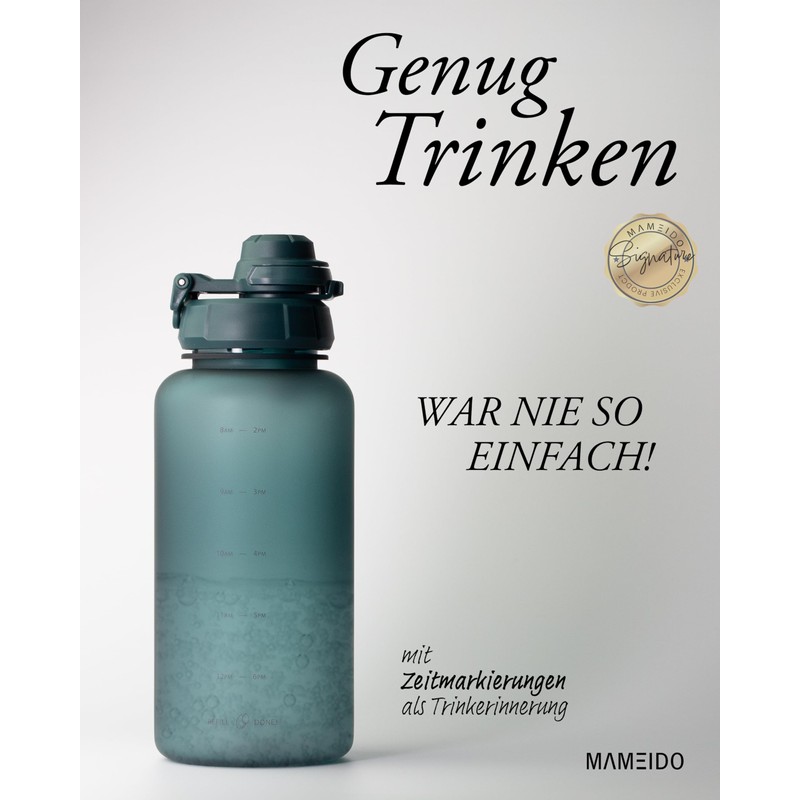 - Sufficient drinking – drinking bottle with straw in 4 different sizes for every liquid need, drinking goals easily achieve with practical time marking, beautiful water bottle 1 litre in many designs.