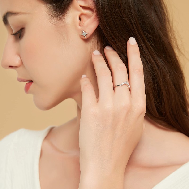 - Design: 1 teardrop and 8 round stone, you can match with 3.5ct to 6ct diamond ring. Brilliant stacking cz eternity wedding band. Dainty silver ring, comfortable to wear as an everyday ring