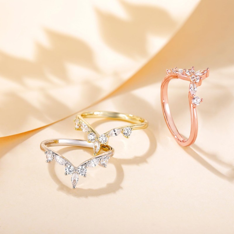 Mameloly Wedding Bands for Women Marquise & Round Shaped Rose Gold Stackable Cubic Zirconia CZ V Shape Curved Engagement Rings for Her Size 7.5