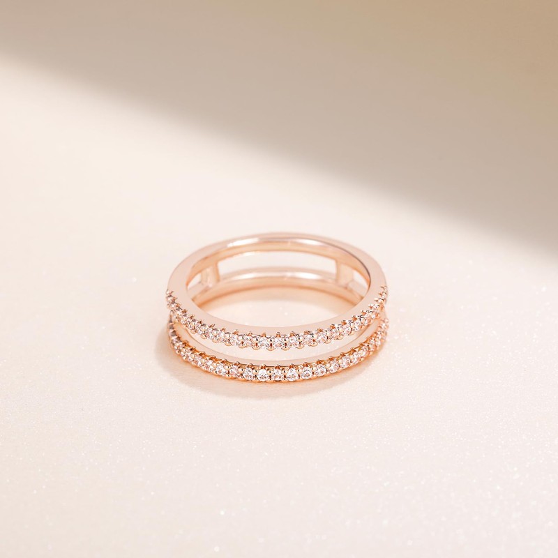 Mameloly Wedding Bands for Women Rose Gold Dainty CZ Cubic Zirconia Half Eternity Stackable Engagement Enhancer Guard Double Ring Size 6