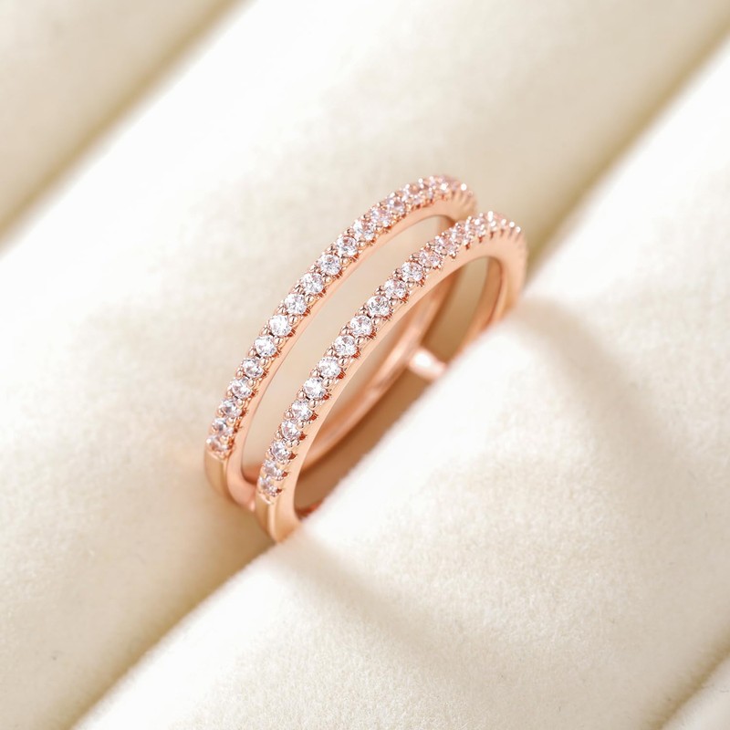 Mameloly Wedding Bands for Women Rose Gold Dainty CZ Cubic Zirconia Half Eternity Stackable Engagement Enhancer Guard Double Ring Size 6