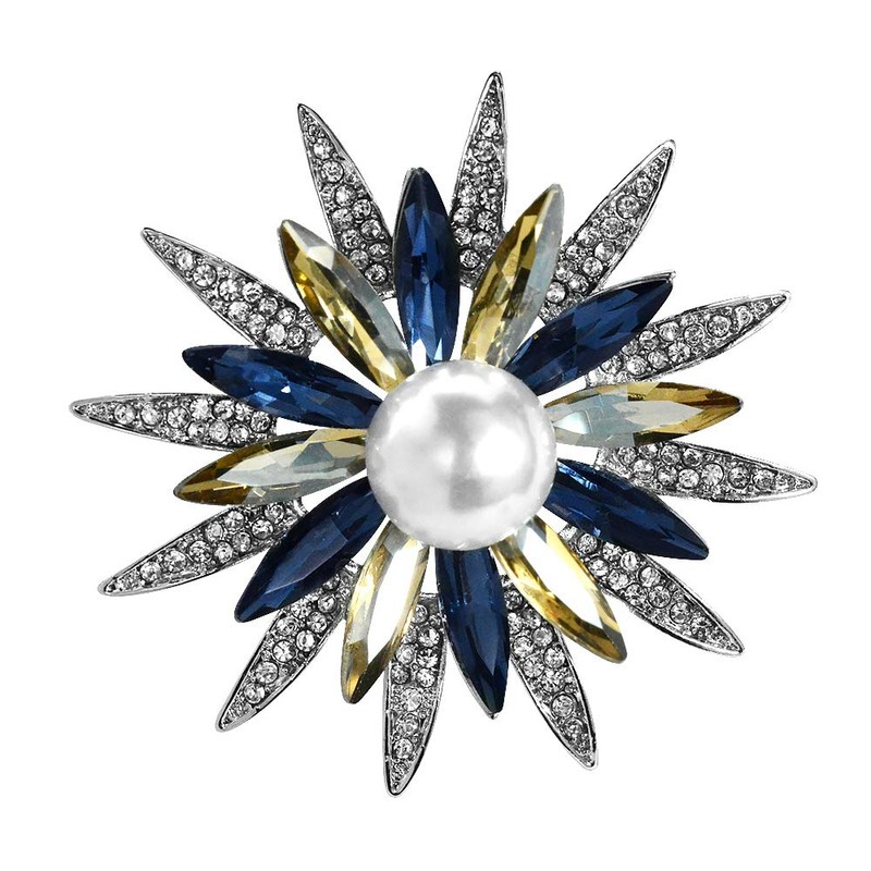Mamfous Austrain Crystal Flower Brooch for Women with Simulated Pearl Bouquet Pins Jewelry Accessories (silver)