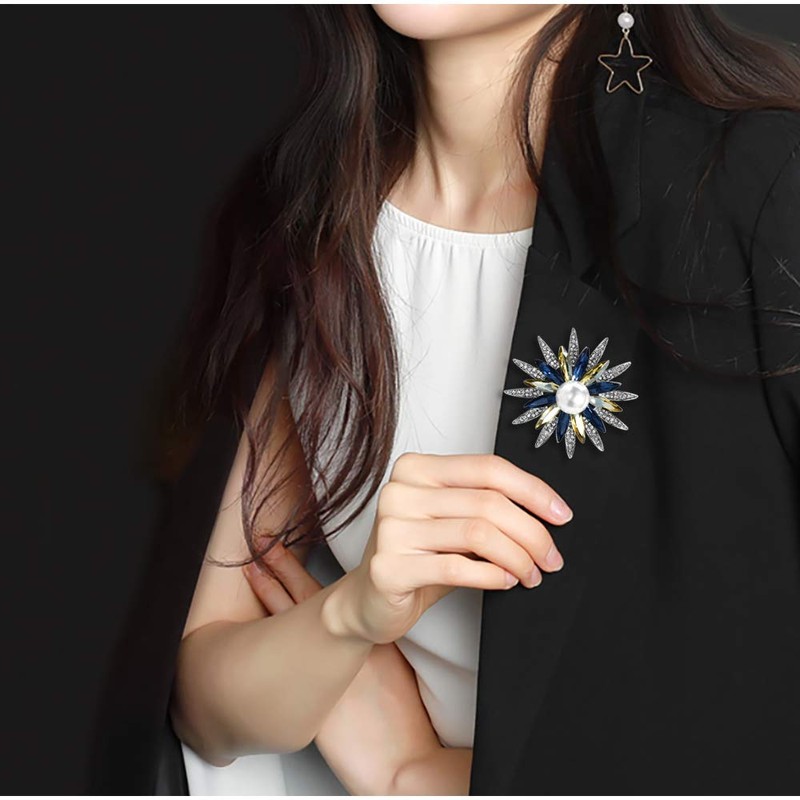 Mamfous Austrain Crystal Flower Brooch for Women with Simulated Pearl Bouquet...