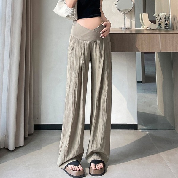 Mamkong Summer Maternity Office Pants Khaki Beige/L