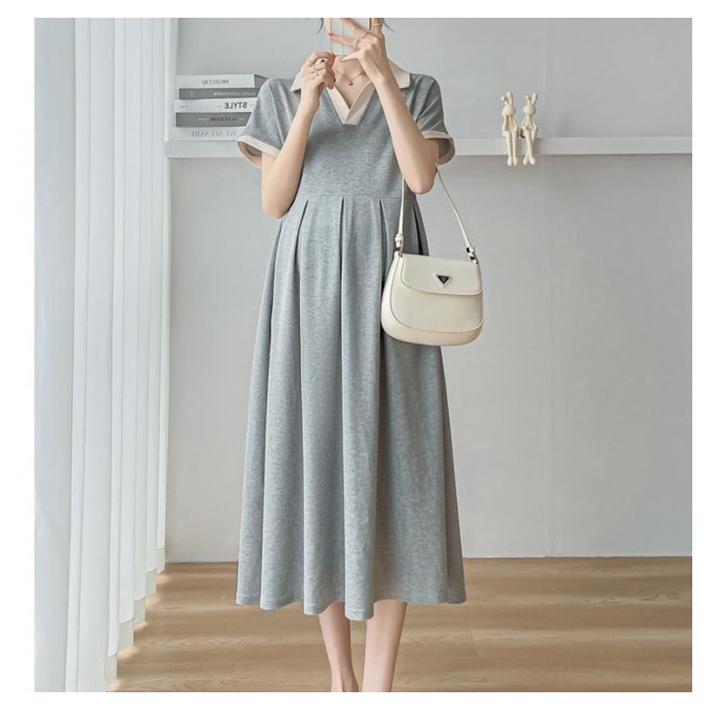 Mamkong Summer Maternity One-Piece Dress Grey / L