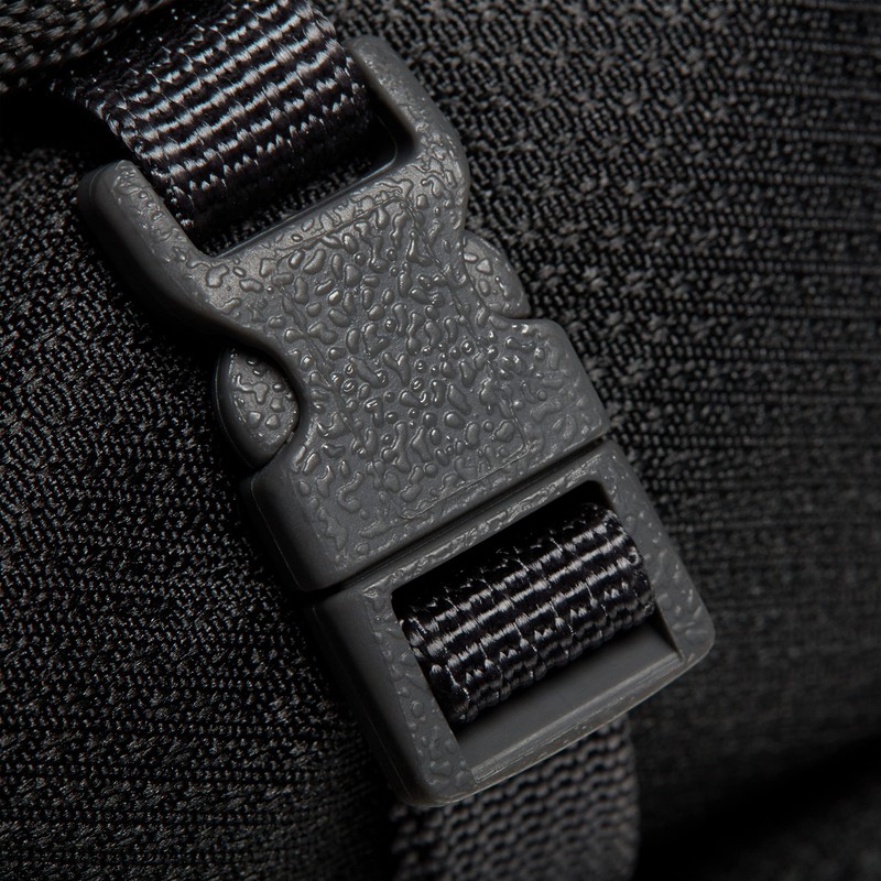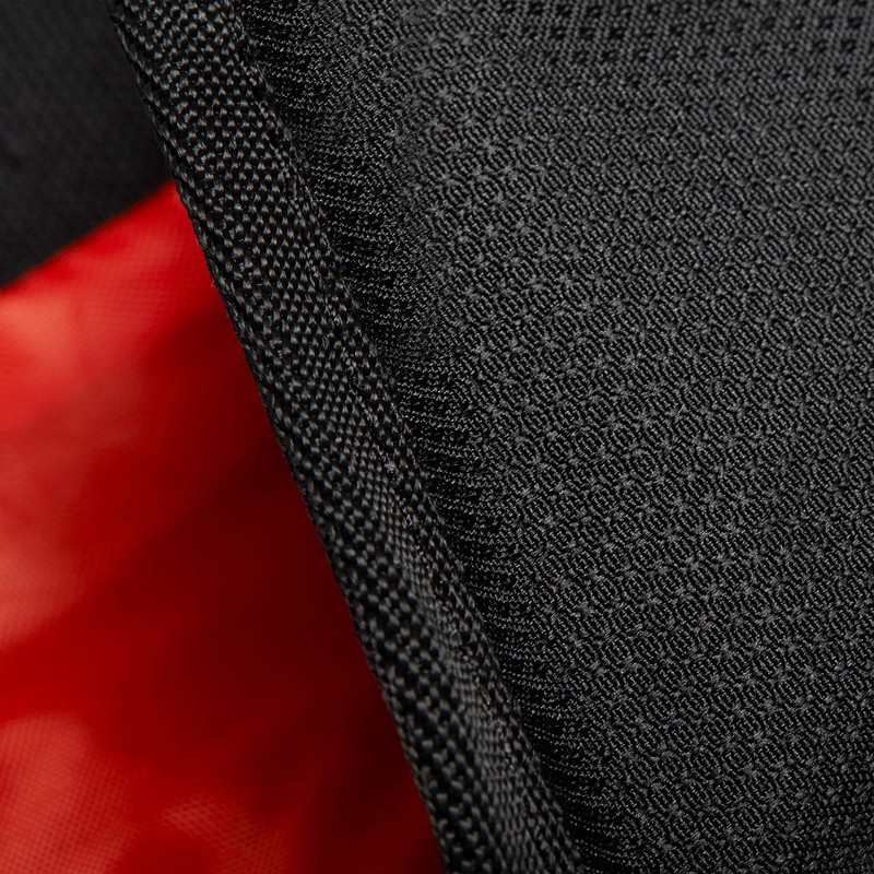 High-quality, durable nylon fabric with high weave density. With water- resistant DWR treatment on the outside, waterproof PU treatment on the inside.